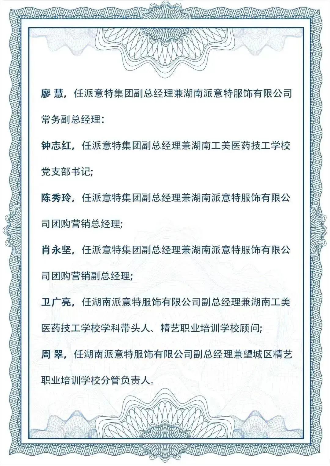 湖南派意特服飾有限公司創立于1993年,注冊資本2.3億元,是一家集設計、研發、生產、銷售、產教融合為一體的現代化服裝企業。 是中國包括公安部、最高檢、最高法、國家林業草原局、中國鐵路集團、中國郵政、中國聯通、中國郵儲銀行等十大部委行業職業裝入圍生產企業。 凝三十年制衣功力,傾情為您定制一件好衣服,公司應用數字化、智能化技術,建成億級版型大數據庫,擁有數百名從業超10年的"藍鉆技師。 憑借優秀的柔性定制生產能力和良好的口碑成為全國近300家定制品牌的定制生產供應鏈。